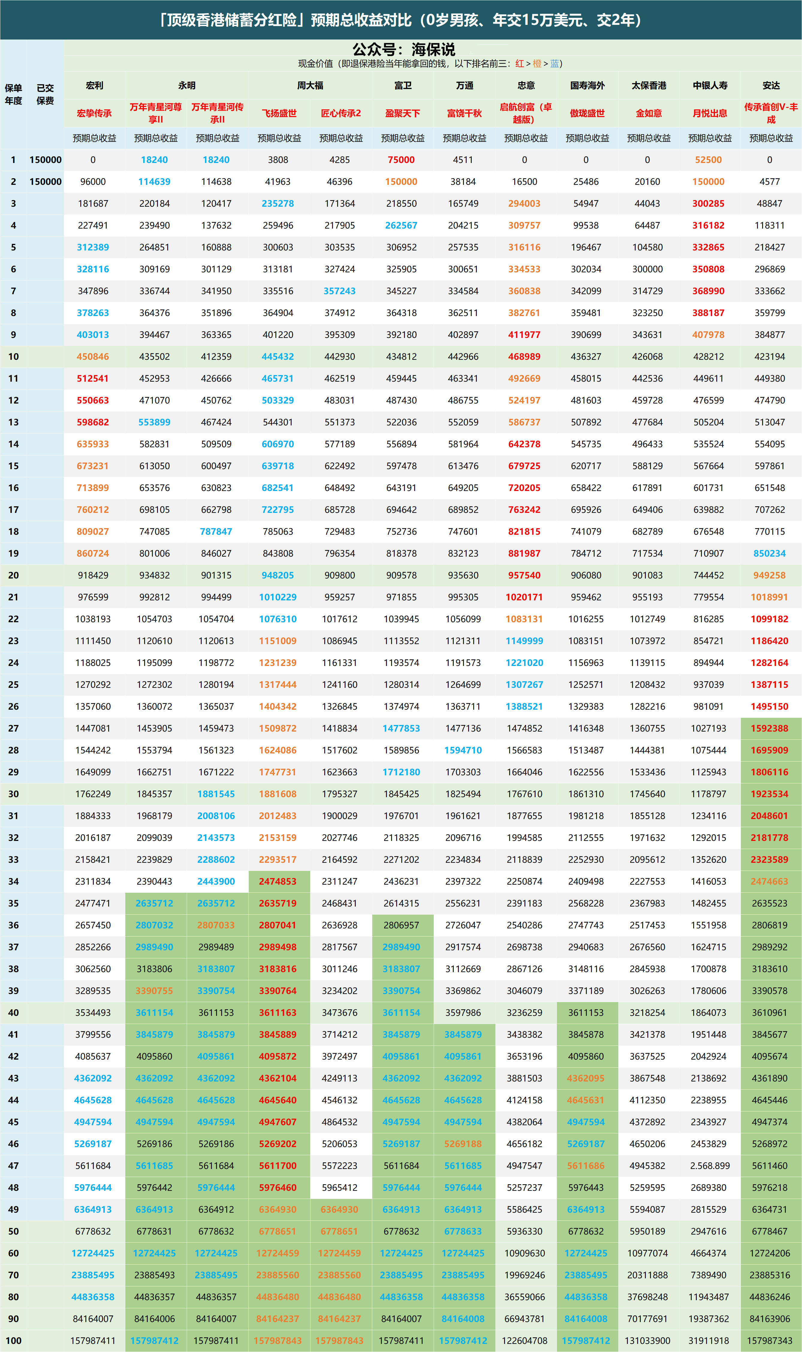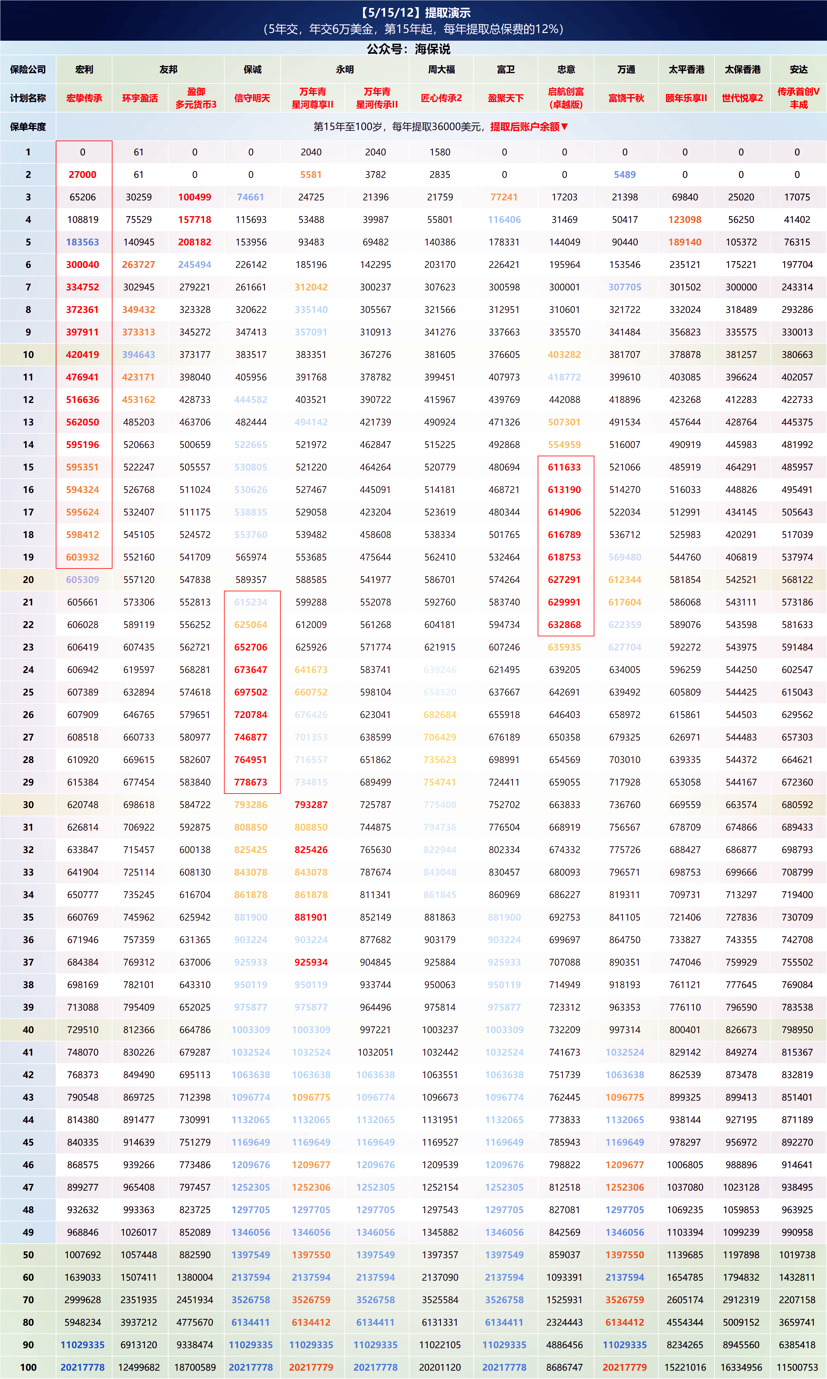 如果考虑品牌、资管、分红稳定性的话,我的推荐顺序就变成友邦环宇盈活、永明星河传承II、保诚信守明天、安达传承首创了。
