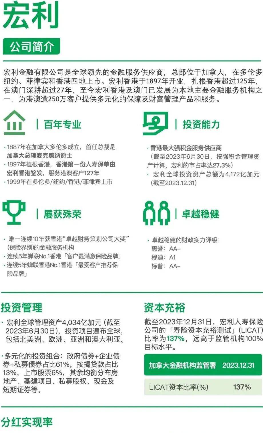 基本涵盖了我们挑选香港保险的三个主要维度了:产品收益、公司实力、分红实现率。