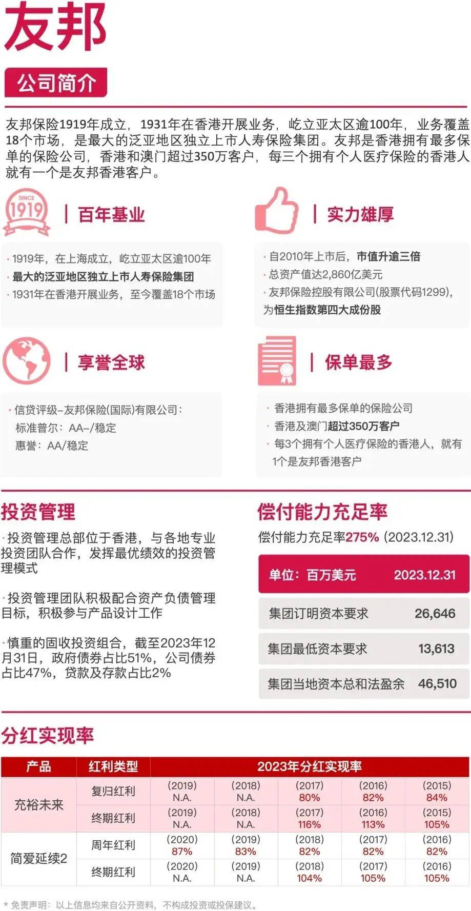 经过百年沉淀,成为最大的泛亚地区独立上市人寿保险集团,覆盖亚太区18个市场,总部位于中国香港。