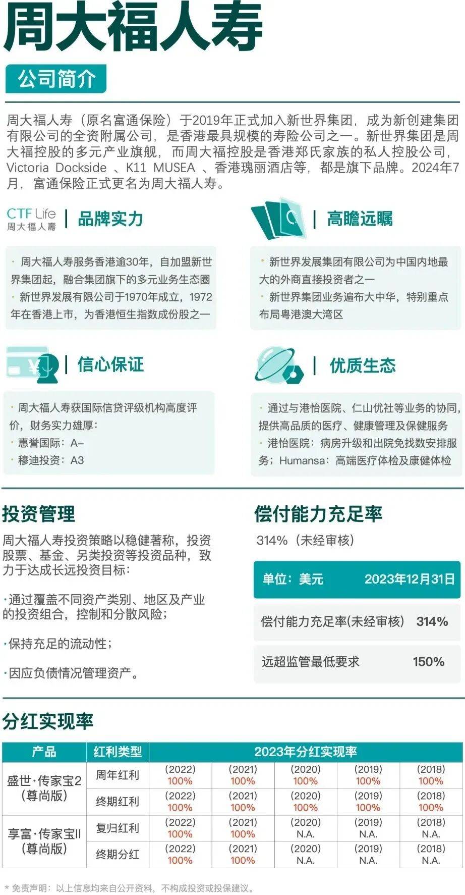 对比其他保险公司,周大福虽然是市场新秀,但周大福的分红实现率一直都是很好的。