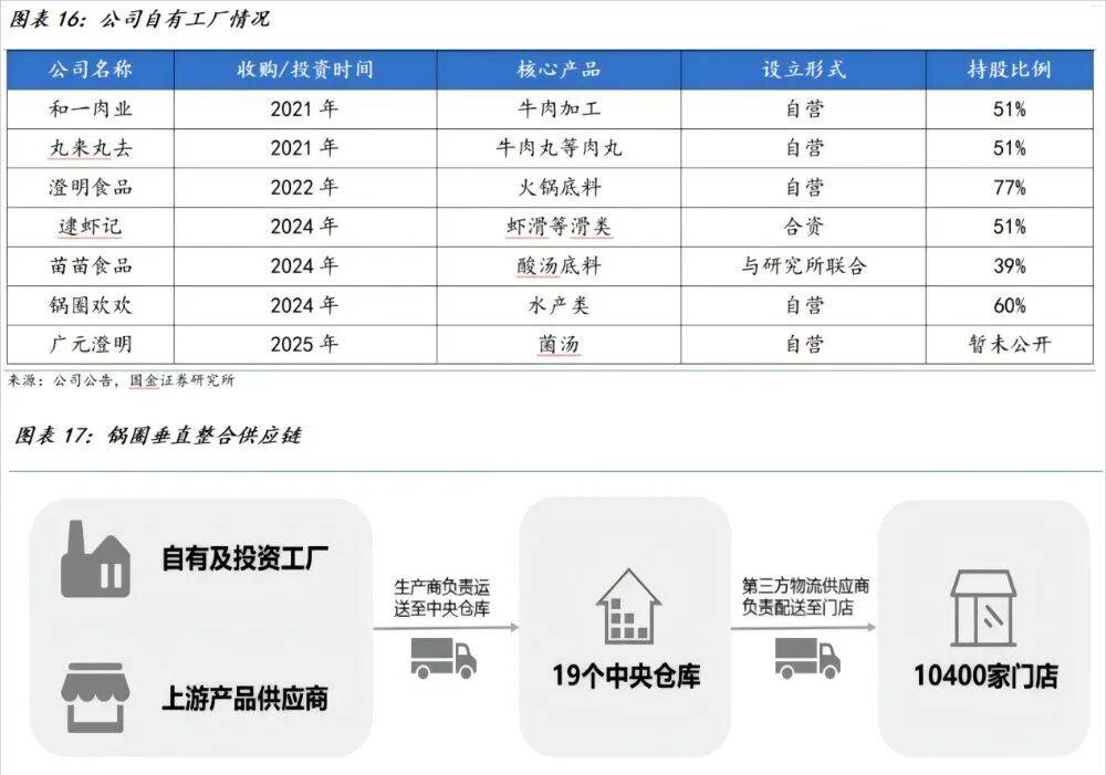 近几年,锅圈持续加码产业链布局,2024年在湖北投产欢欢食品、收购广西逮虾记、在贵州成立苗苗酸汤食品,每一步都围绕核心品类展开,要么控股要么自建,就像杨明超说的“核心产品是药方里的药引子,不可能丢掉”。