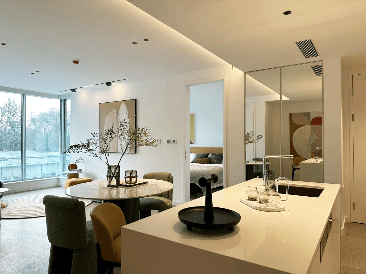 在这里,养老不再是被动的休养,而是主动的乐活。社区规划了600余套养老居室及188张专业护理床位,房间内配备正负压户式新风系统、葡萄牙进口软木地板、全景落地窗及智能护理床,细节之处尽显匠心。