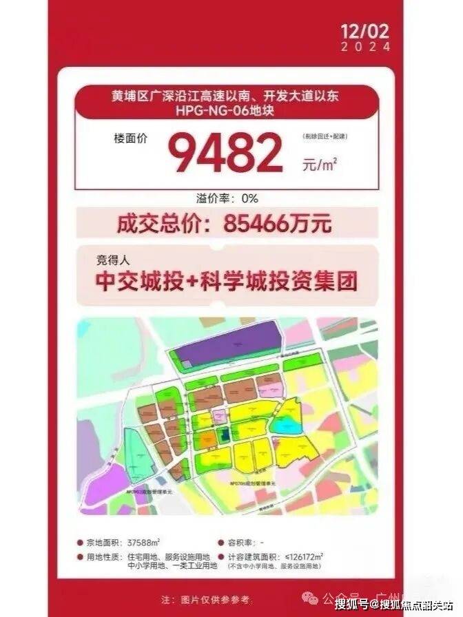 以底价拿下,该地块起拍价8.5亿,总建面12.6万平。剔除3.09万平回迁+5149平配建,折合楼面价9482元/平。