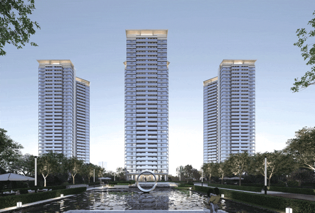 外立面,融入现代与摩登风情,用超薄平的公建化建筑立面设计,撑起天际线高度。