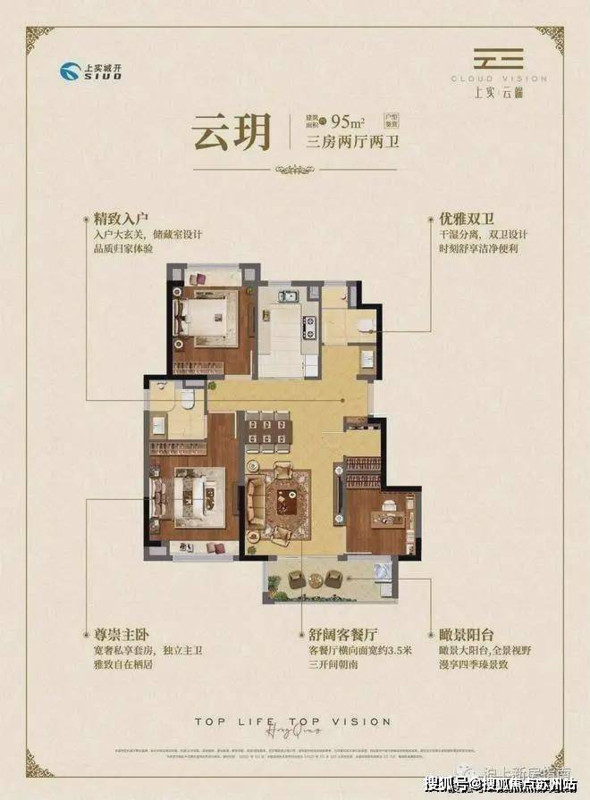 这是金地首次将这一高端产品系带入苏州,旨在为苏州人带来更高端的居住体验。立峯建筑面积约103㎡狮山全能王这个三房两厅两卫的户型堪称全能王,拥有约6.8米双阳台,U型厨房设计实用高效,主卧更是配备了套房设